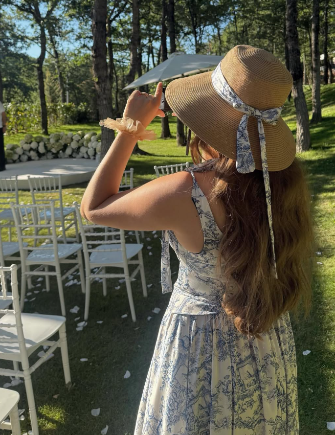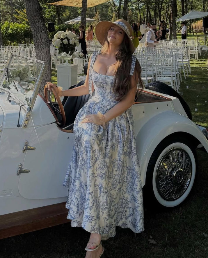 Blue Print Floral Two Piece A Line Satin Long Prom Dress Party Dress 16th Birthday Dress HZ1023