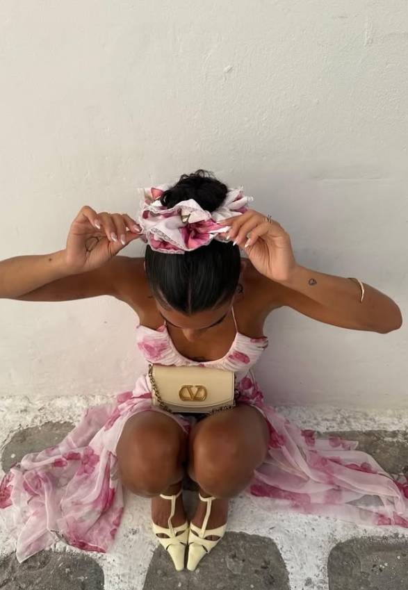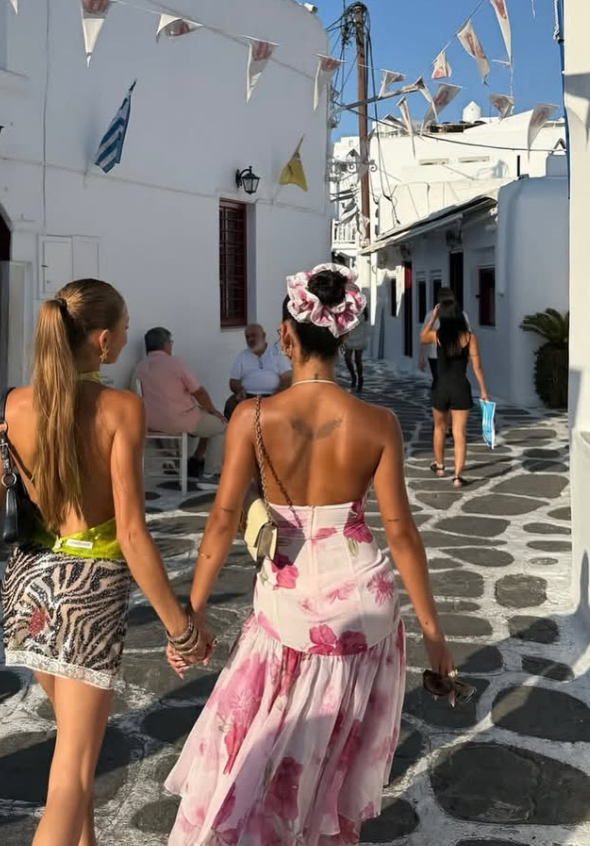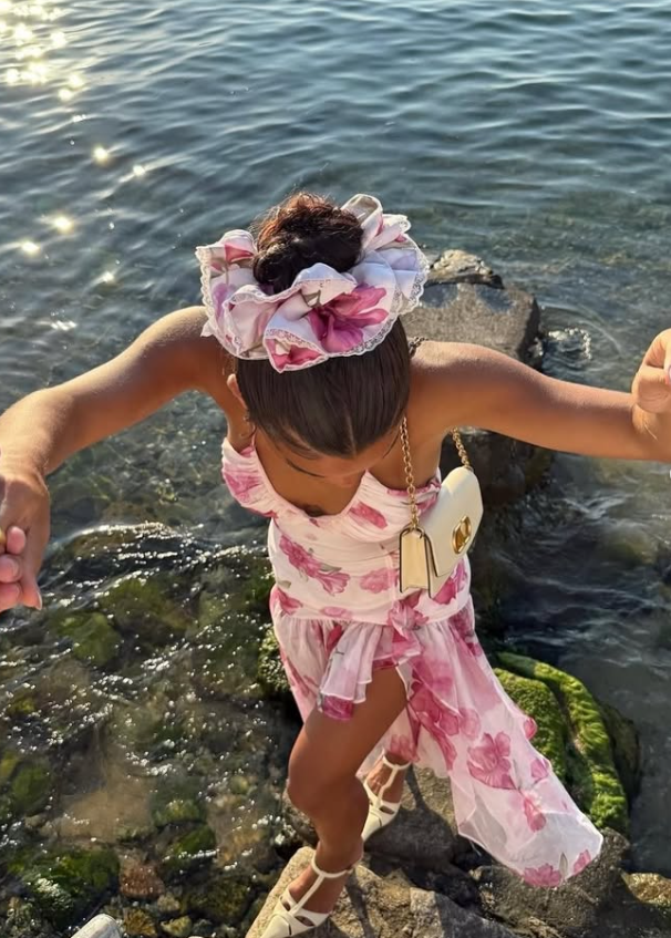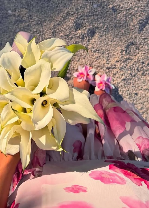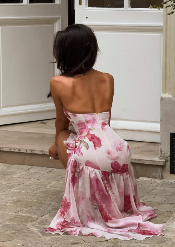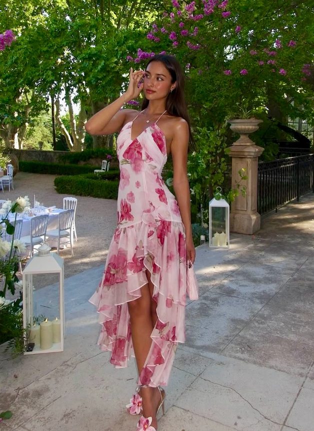 Pink Print Floral A Line Straps Ruffle Chiffon Prom Dress Party Dress HZ1023
