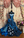 Elegant Blue Print Floral Mermaid Spaghetti Strap Satin Long Party Dress Cocktail Dress HZ1023