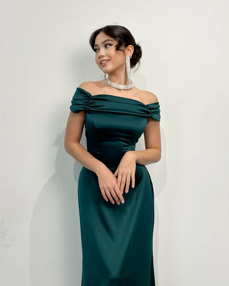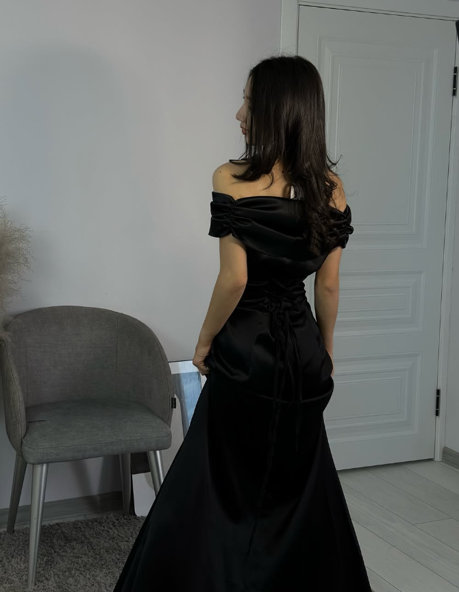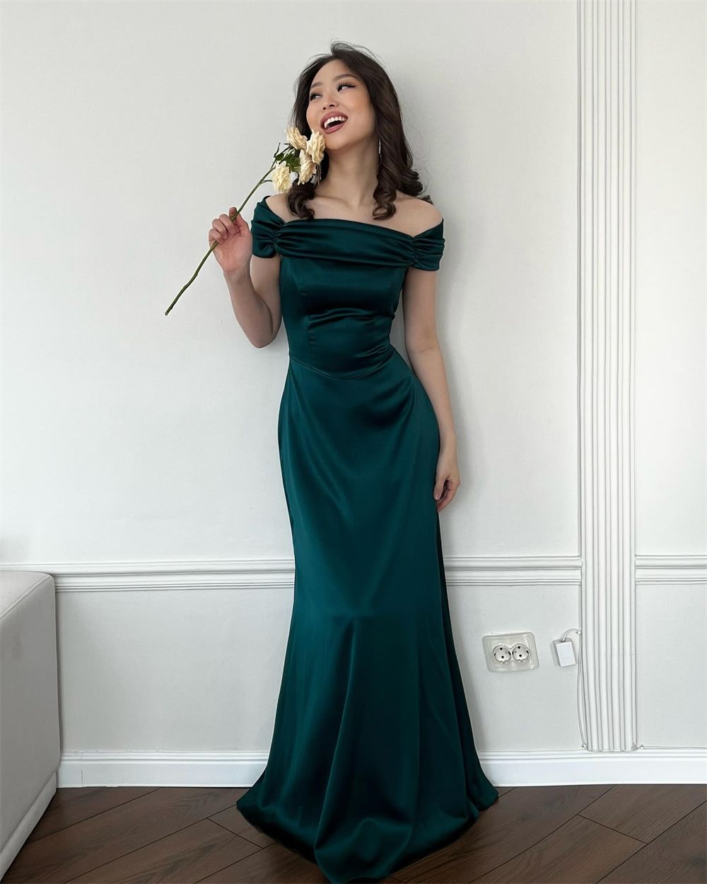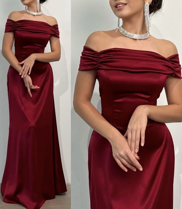 Pretty Brown Mermaid Off the Shoulder Satin Prom Dress Evening Dress Date Dress HZ1023