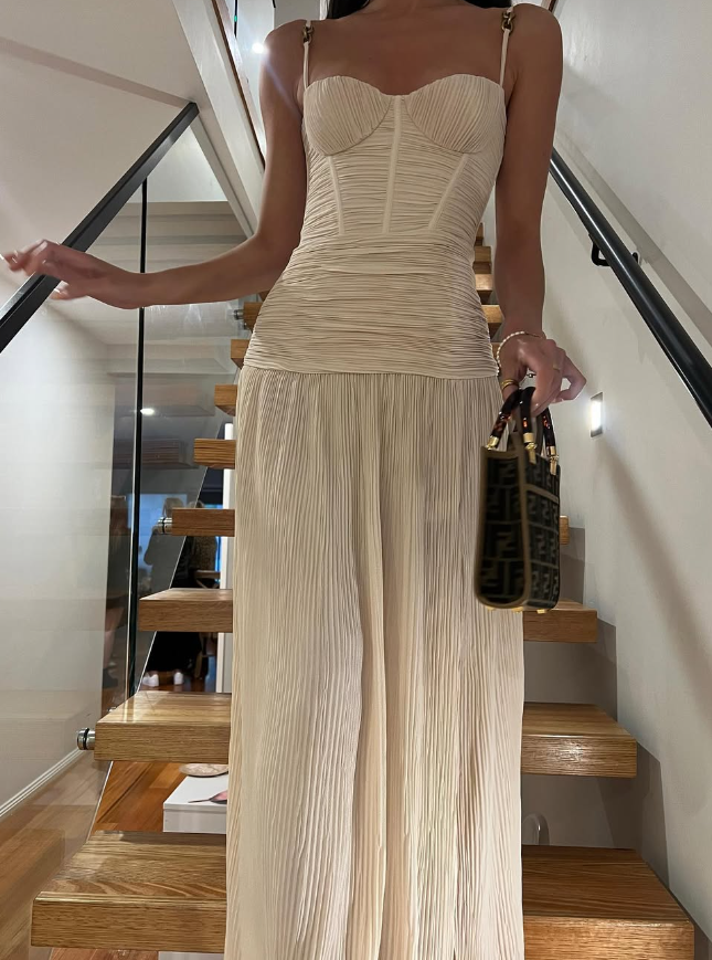 Simple A Line Spaghetti Straps Satin Long Prom Dress Evening Dress with Slit HZ1023