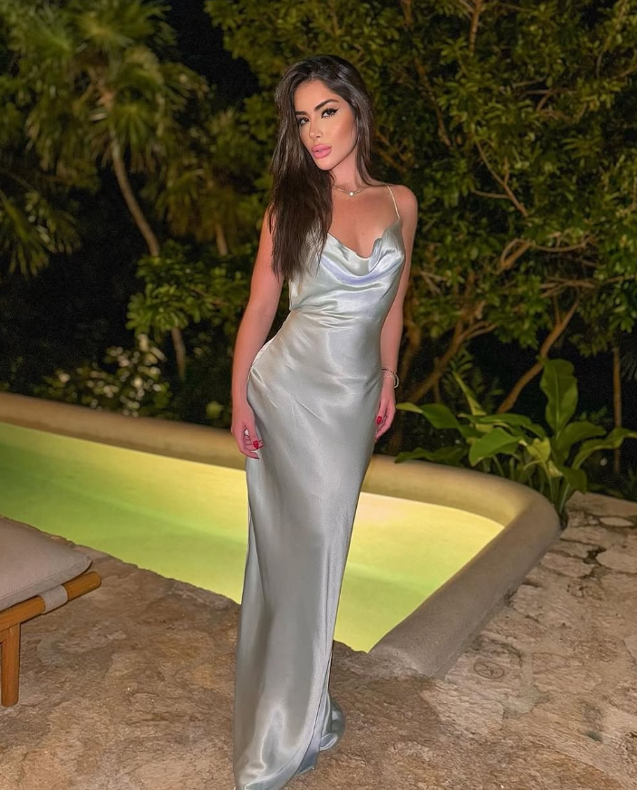 Simple Sexy Sheath Spaghetti Strap Silver Satin Open Back Prom Dress Evening Dress HZ1023