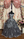 Vintage Blue Floral Black Beaded Ruffles Chiffon Prom Dress Evening Party Gowns HZ1023
