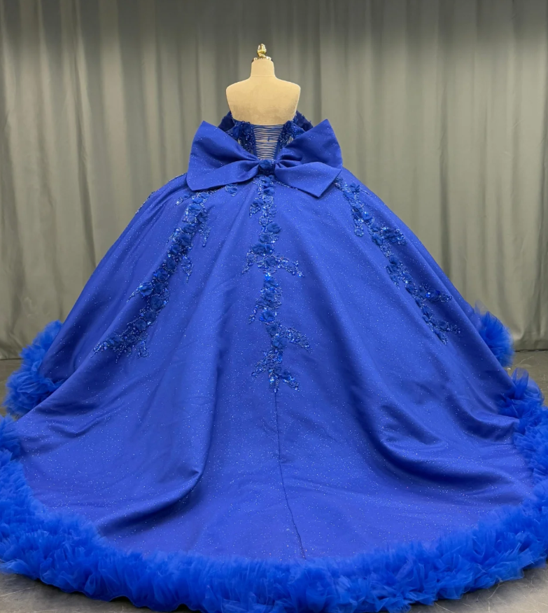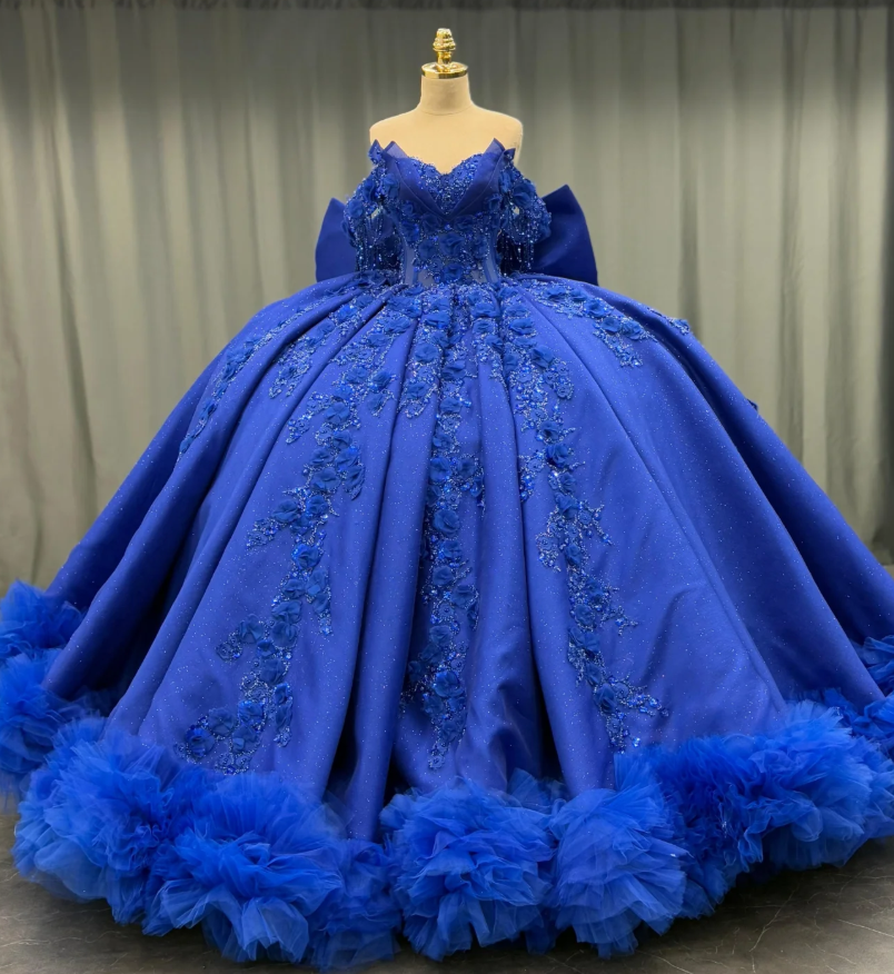 Royal Blue Ball Gown Off the Shoulder Beaded 3D Flowers Sweet 16 Dress Girls Party Gowns vestidos de quincea?era HZ1023