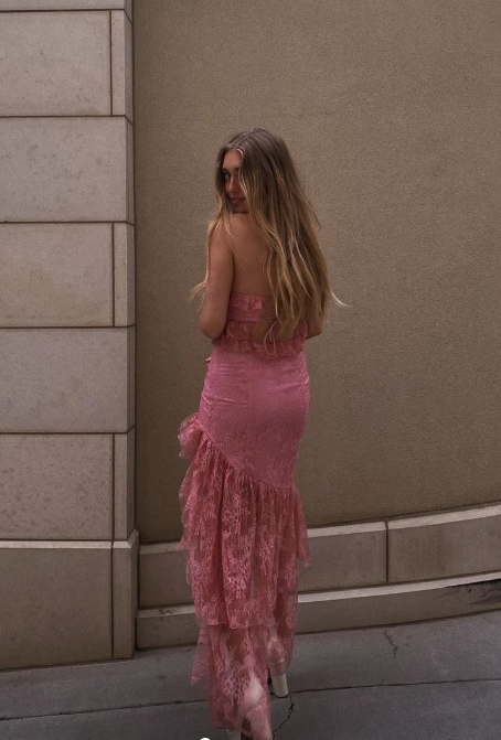 Sexy Strapless Lace Ruffle Prom Dress Long Party Dress HZ1023