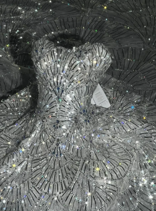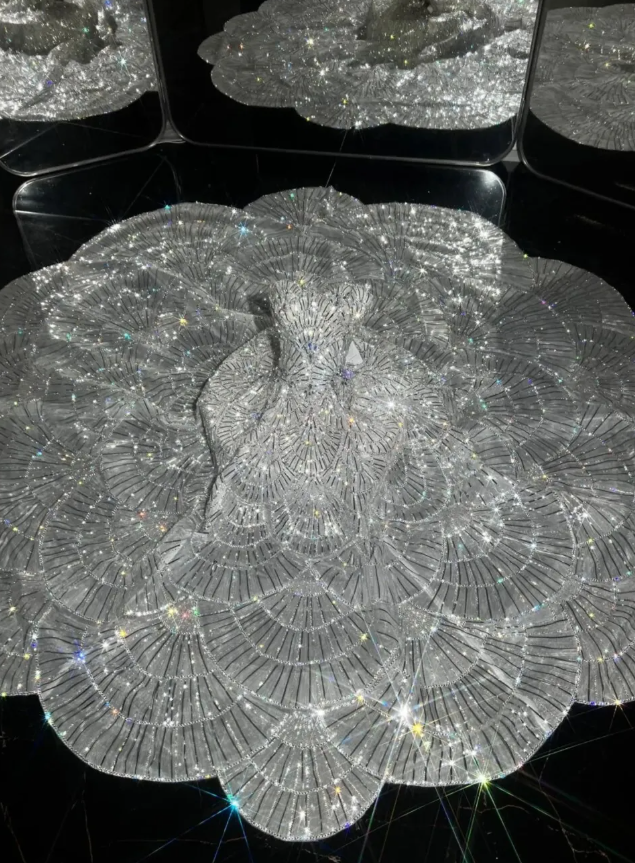 Silver Sequin Petal Shiny Ball Gown Strapless Tulle Long Sweep Prom Dress Evening Dress Party Dress HZ1023