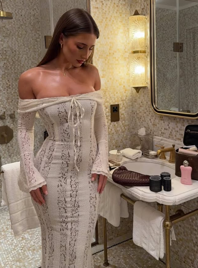 2025 New Sheath Long Sleeve White Lace Long Prom Dress Evening Dress HZ1023