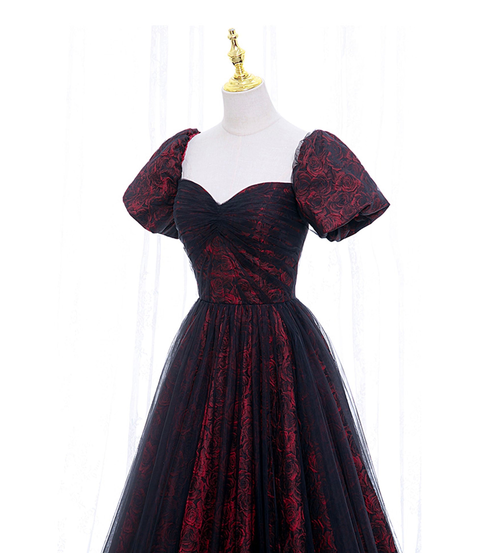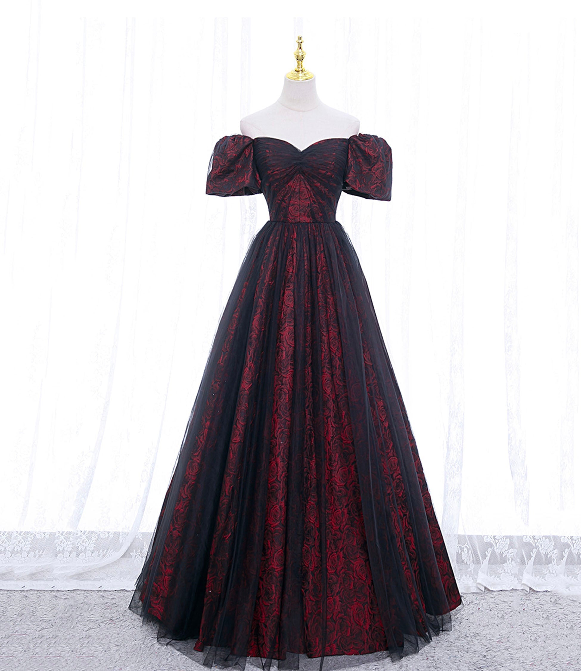 A-line Black Tulle Long Prom Dress Evening Dress HZ1023