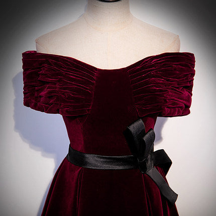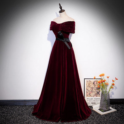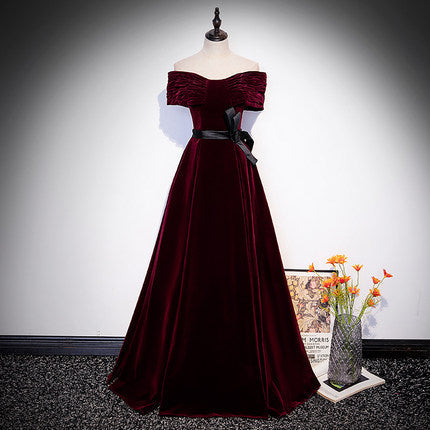 A line Off The Shoulder Velvet Long Prom Dresses HZ1023