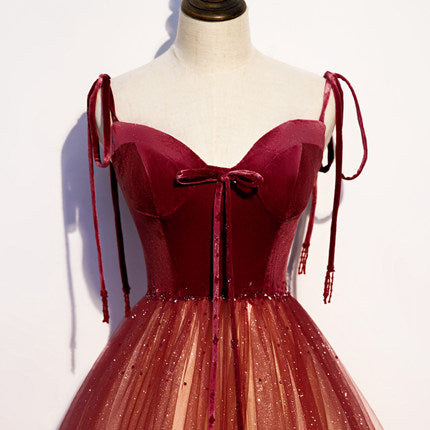 A line Red Sequin Tulle Prom Dresses Sexy Evening Dress HZ1023