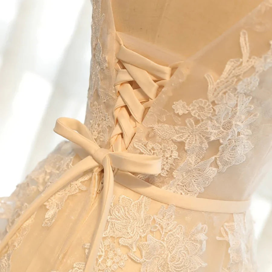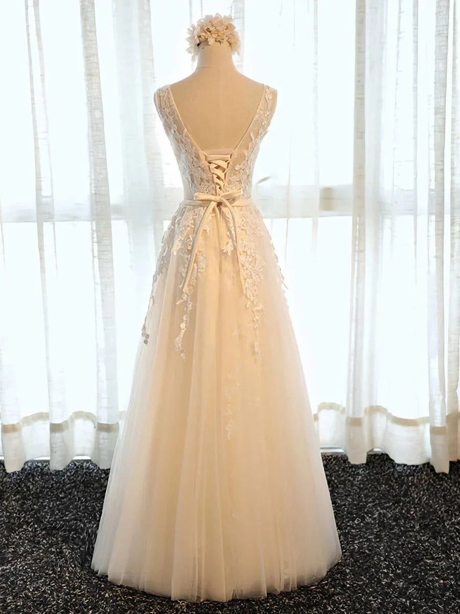 A Line Round Neck Appliques Tulle Prom Dress Formal Evening Dress HZ1023