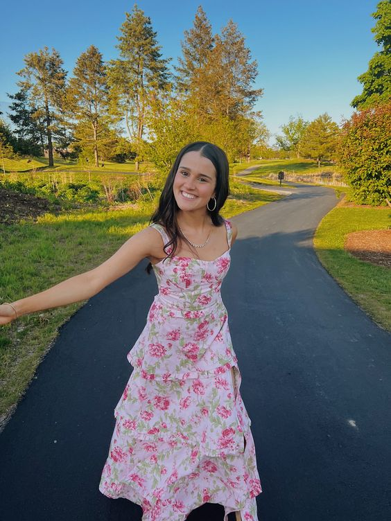 A-Line Sequare Neck Floral Layered Long Prom Dress With Slit Elegant Formal Evening Dress HZ1023