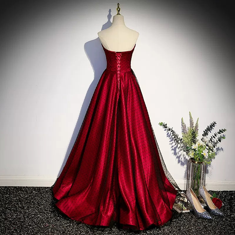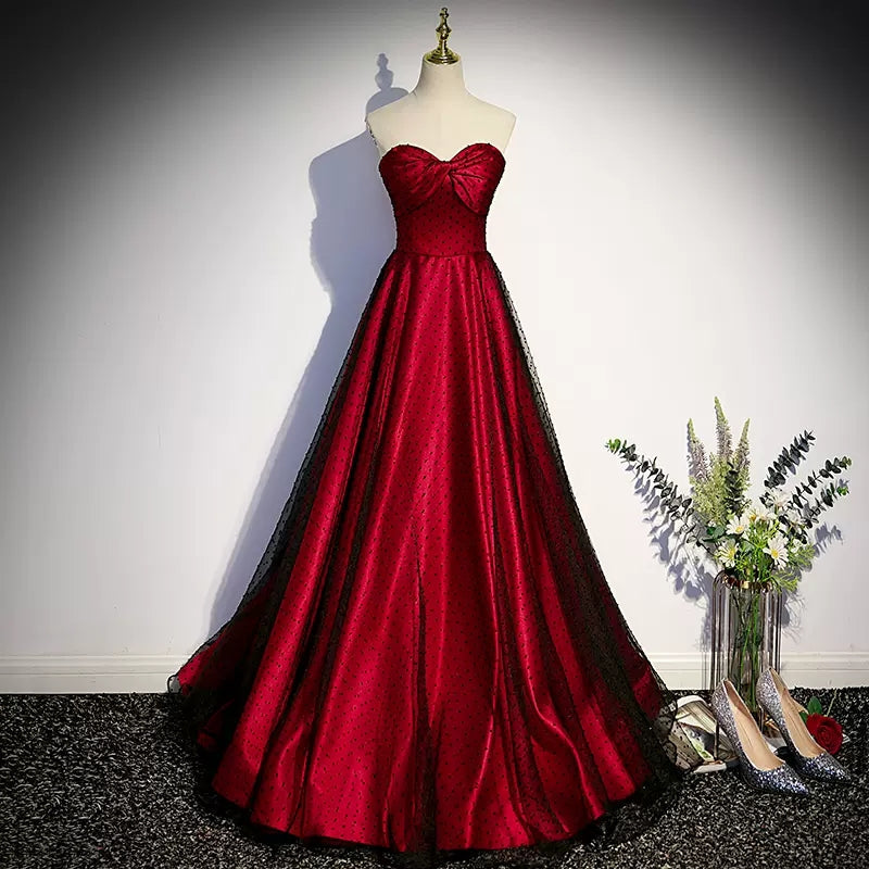A line Short Puffy Sleeves Tulle Red Prom Dresses HZ1023
