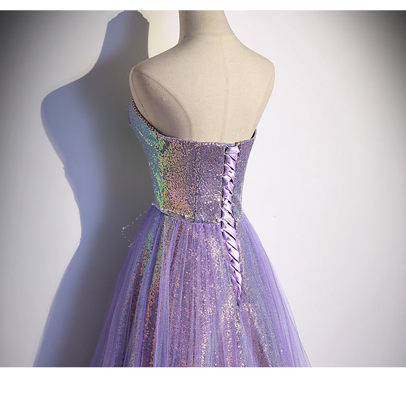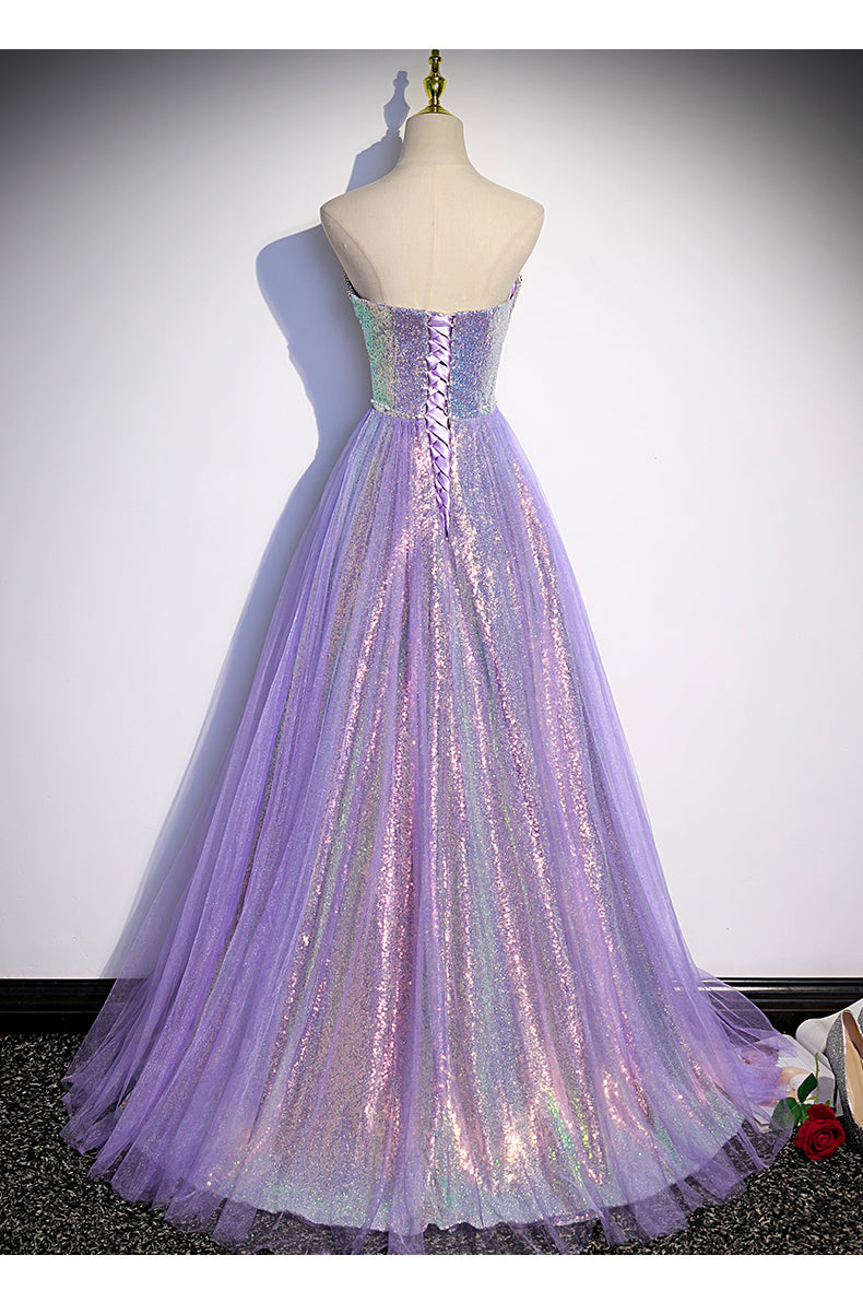 A line Sweetheart Long Tulle Lilac Prom Dresses HZ1023