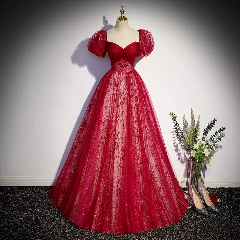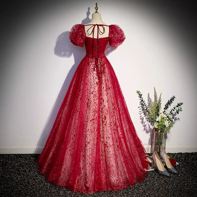 A line Tulle Red Prom Dresses Sexy Prom Dress HZ1023