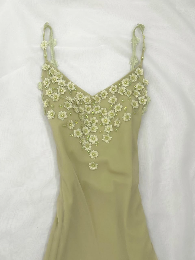 Bean Green Floral A Line Spaghetti Strap Beaded Layered Chiffon Homecoming Dress Party Dress HZ1023