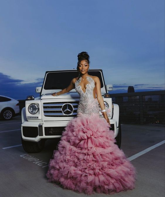 Beautiful Pink Beaded Mermaid Prom Dress Long Evening Dress HZ1023