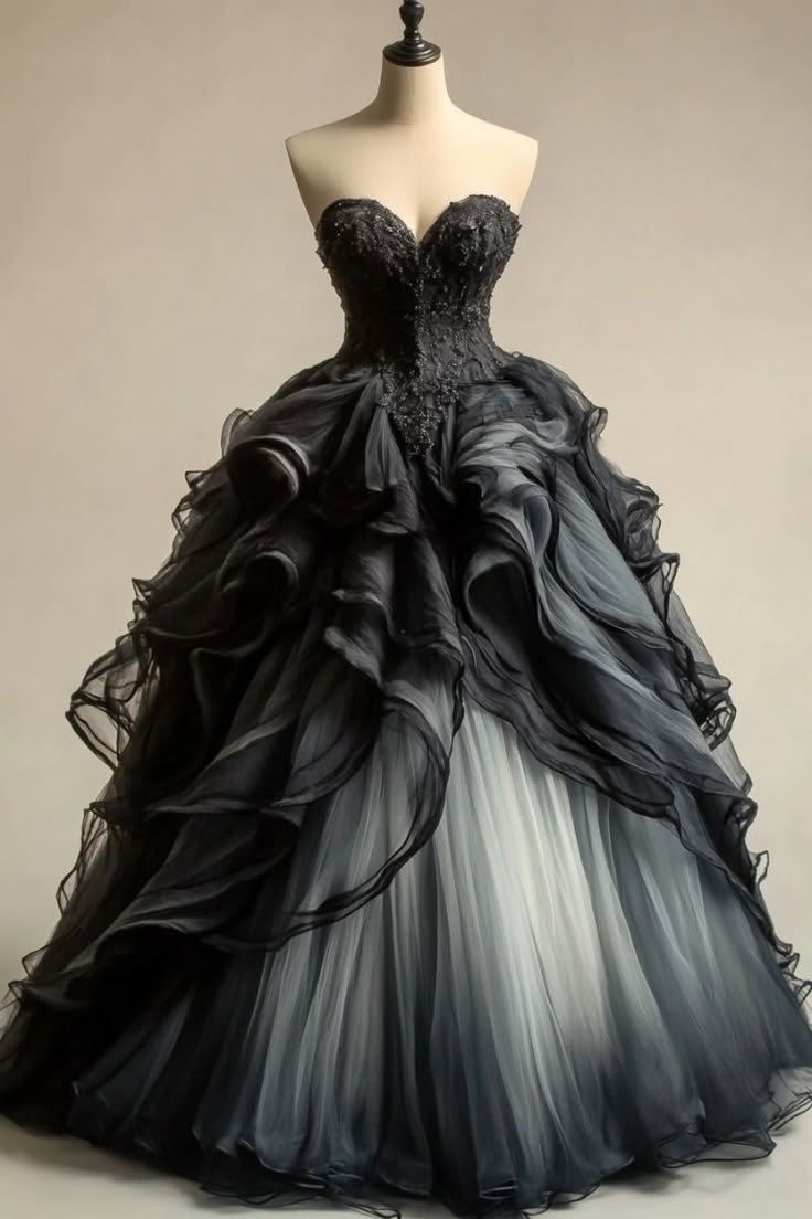 Charming A Line Sweetheart Neck Beaded Ruffle Tulle Prom Dress Evening Dress HZ1023
