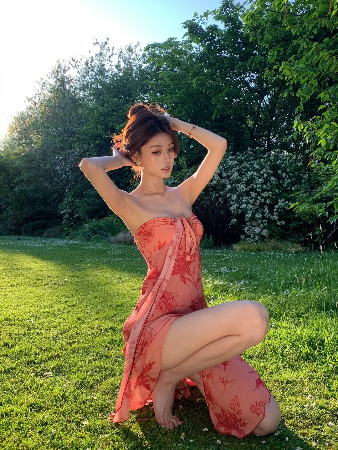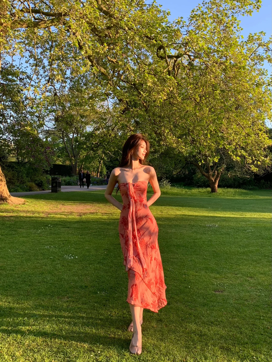Cute A Line Sweetheart Neck Print Floral Chiffon Prom Dress Outfits HZ1023