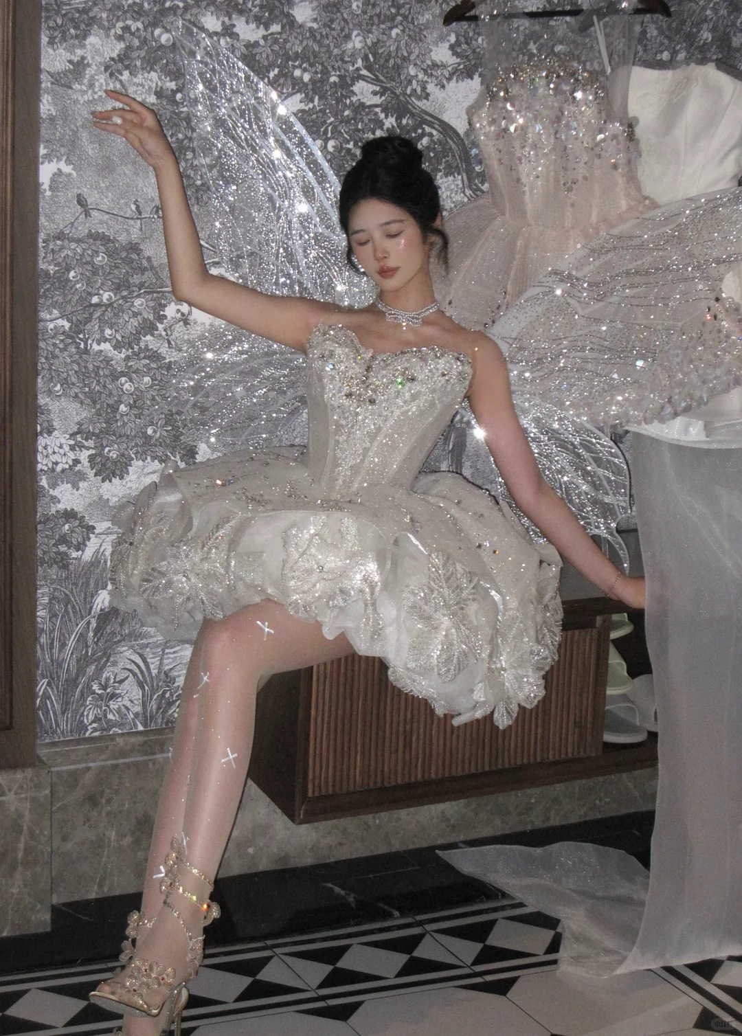 Cute A Line Sweetheart Neck Silver Sequin Beaded Tulle Homecoming Dress Party Dress HZ1023
