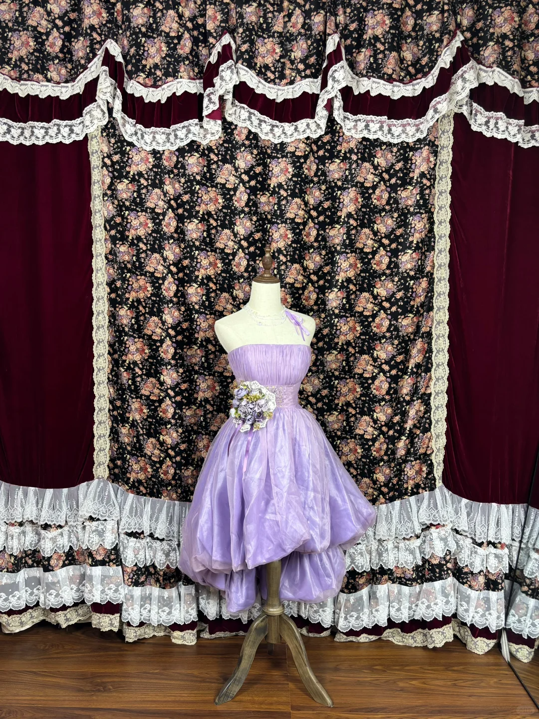 Cute Purple A Line One Shoulder Flower Satin Tulle Homecoming Dress Cocktail Dress HZ1023