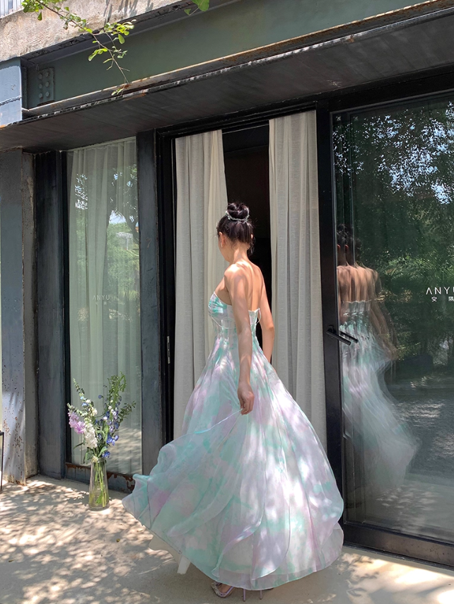Dreamy Multi-color A Line Strapless Ruffle Chiffon Long Prom Dress Party Dress HZ1023