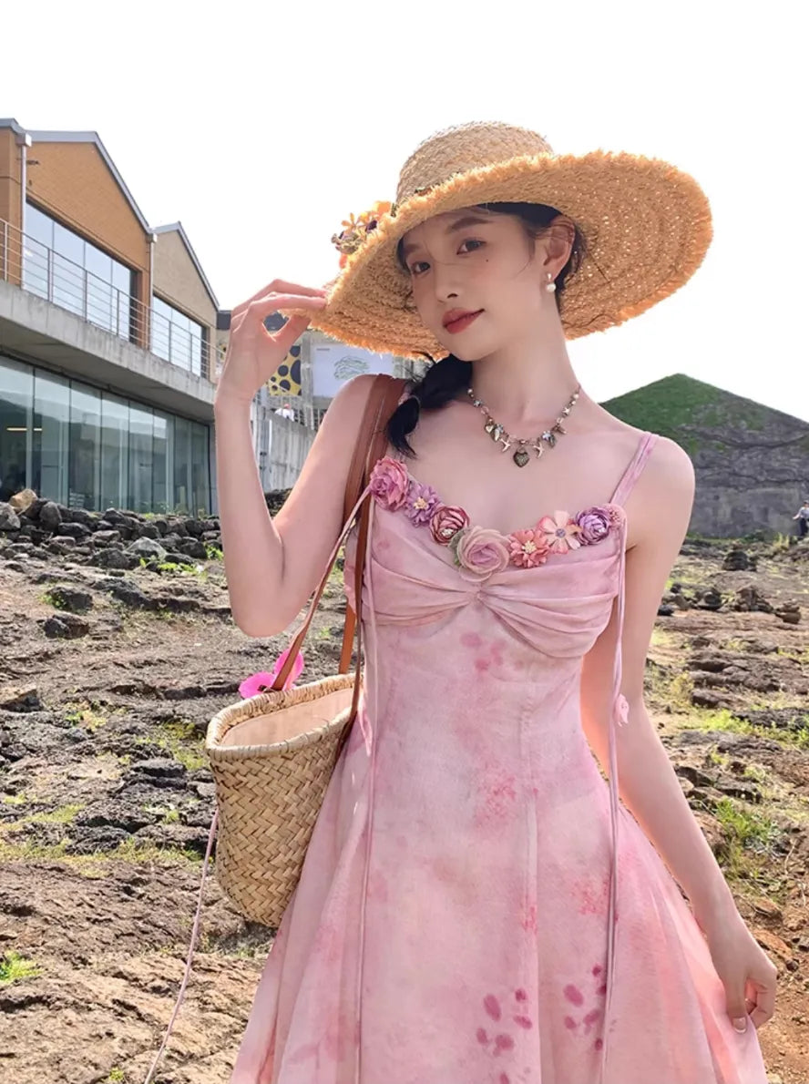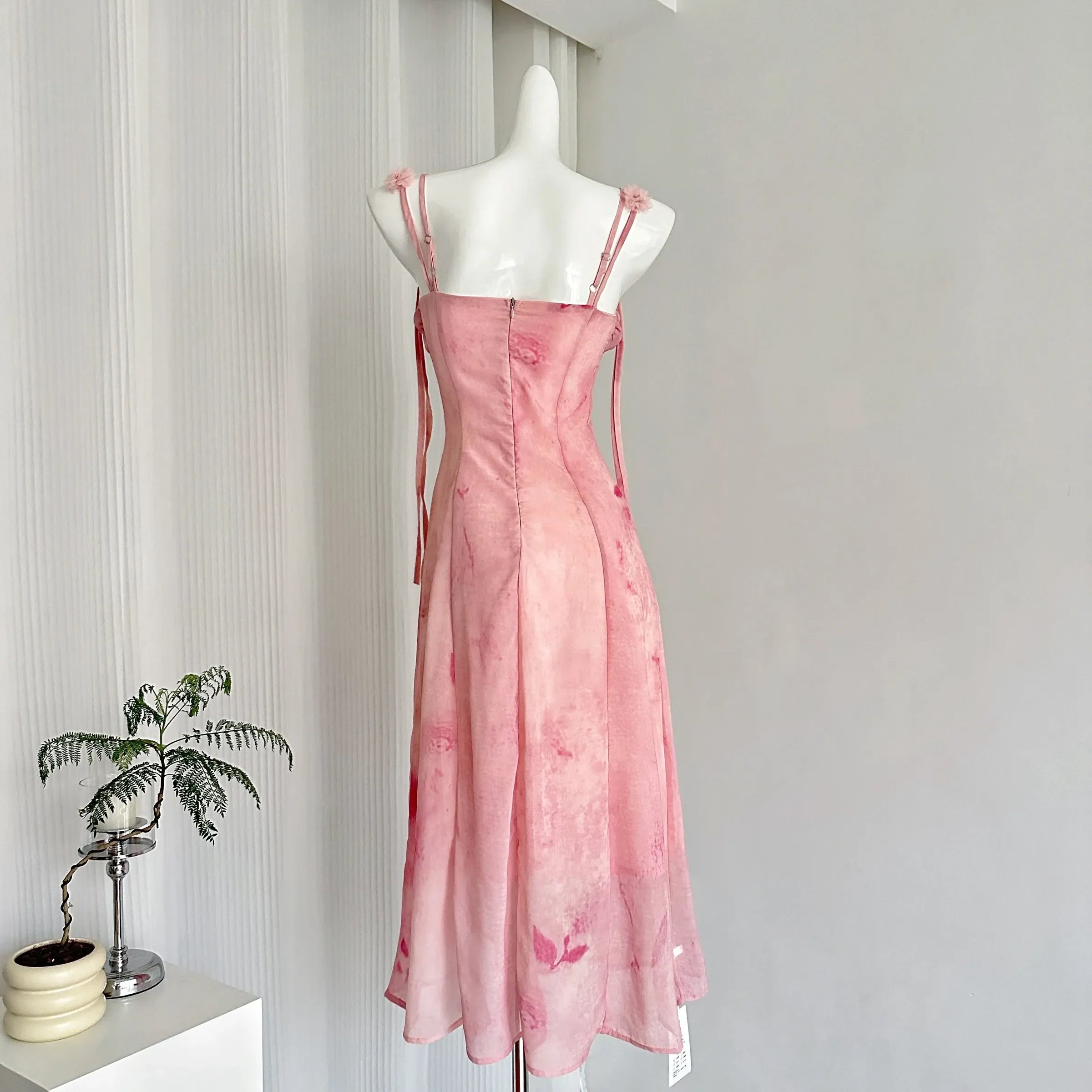 Elegant A Line 3D Flower Print Floral Chiffon Long Evening Dress Outfits HZ1023