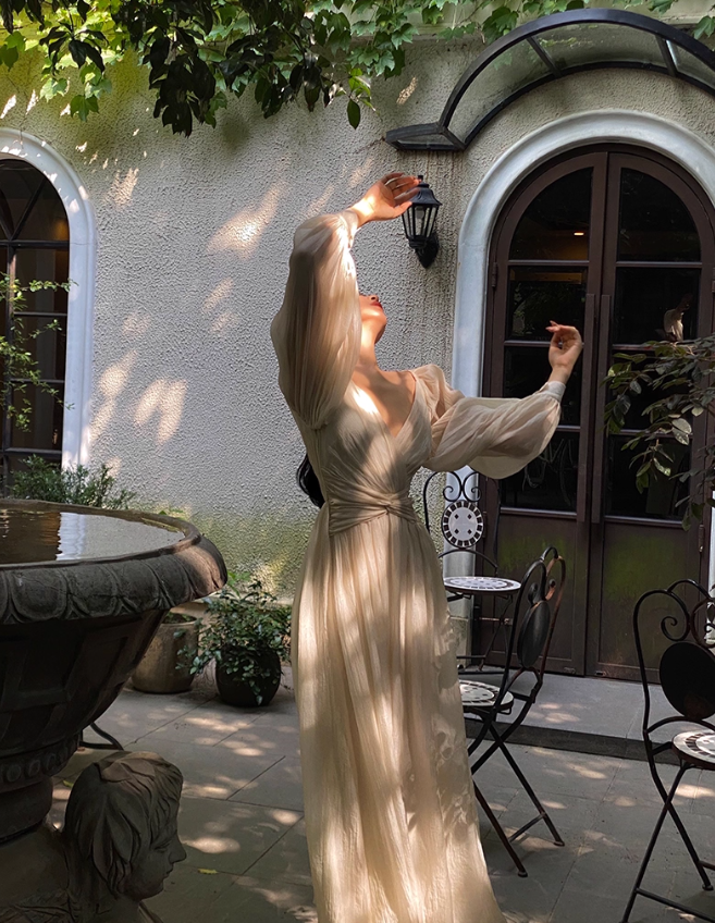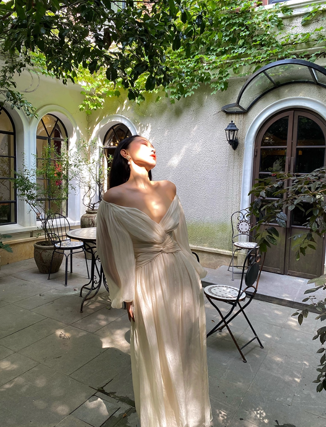 Elegant A Line Long Sleeve White Chiffon Long Prom Dress Party Dress HZ1023