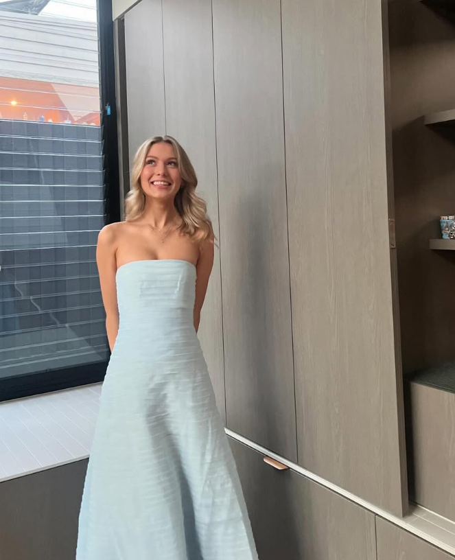 Elegant A Line Strapless Tiered Sky Blue Tulle Prom Dress Evening Dress HZ1023
