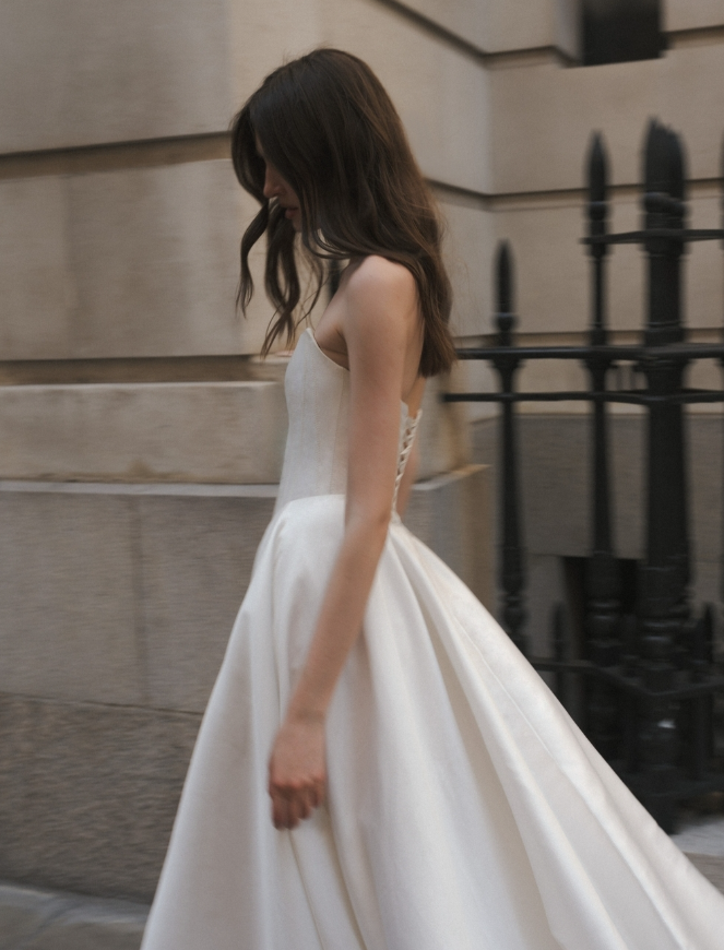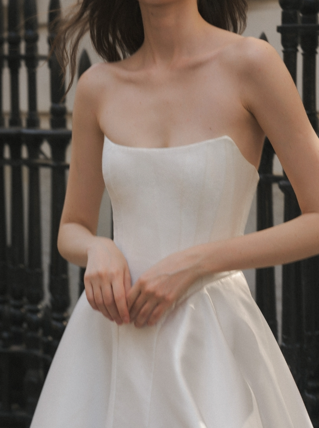 Elegant Ball Gown Strapless White Satin Wedding Dress HZ1023