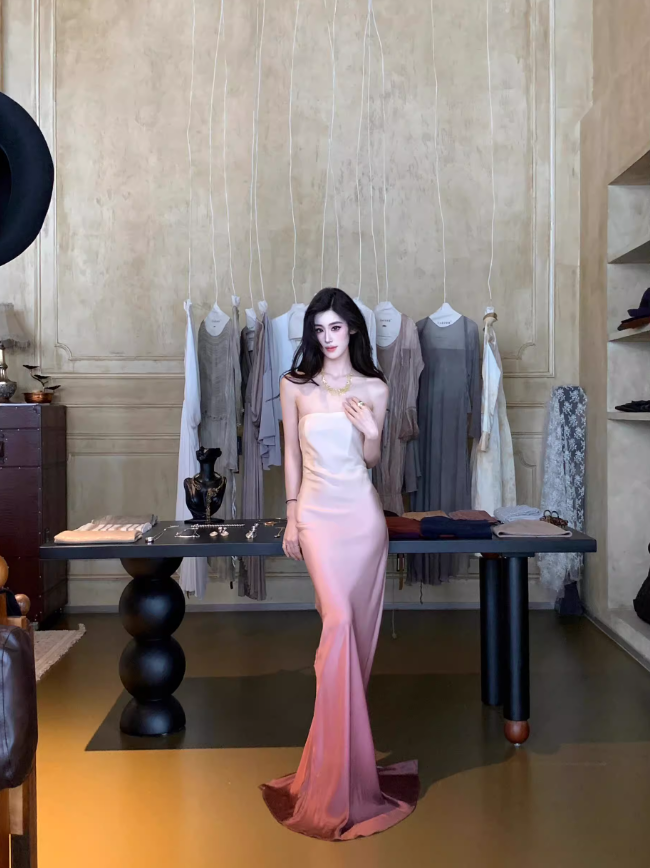 Elegant Mermaid Strapless Grape Purple Ombre Satin Prom Dress Outfits HZ1023