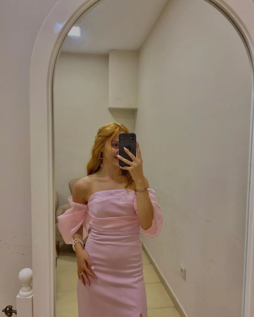 Elegant Pink Mermaid Off Shoulder Slit Long Party Prom Dress Evening Dress HZ1023
