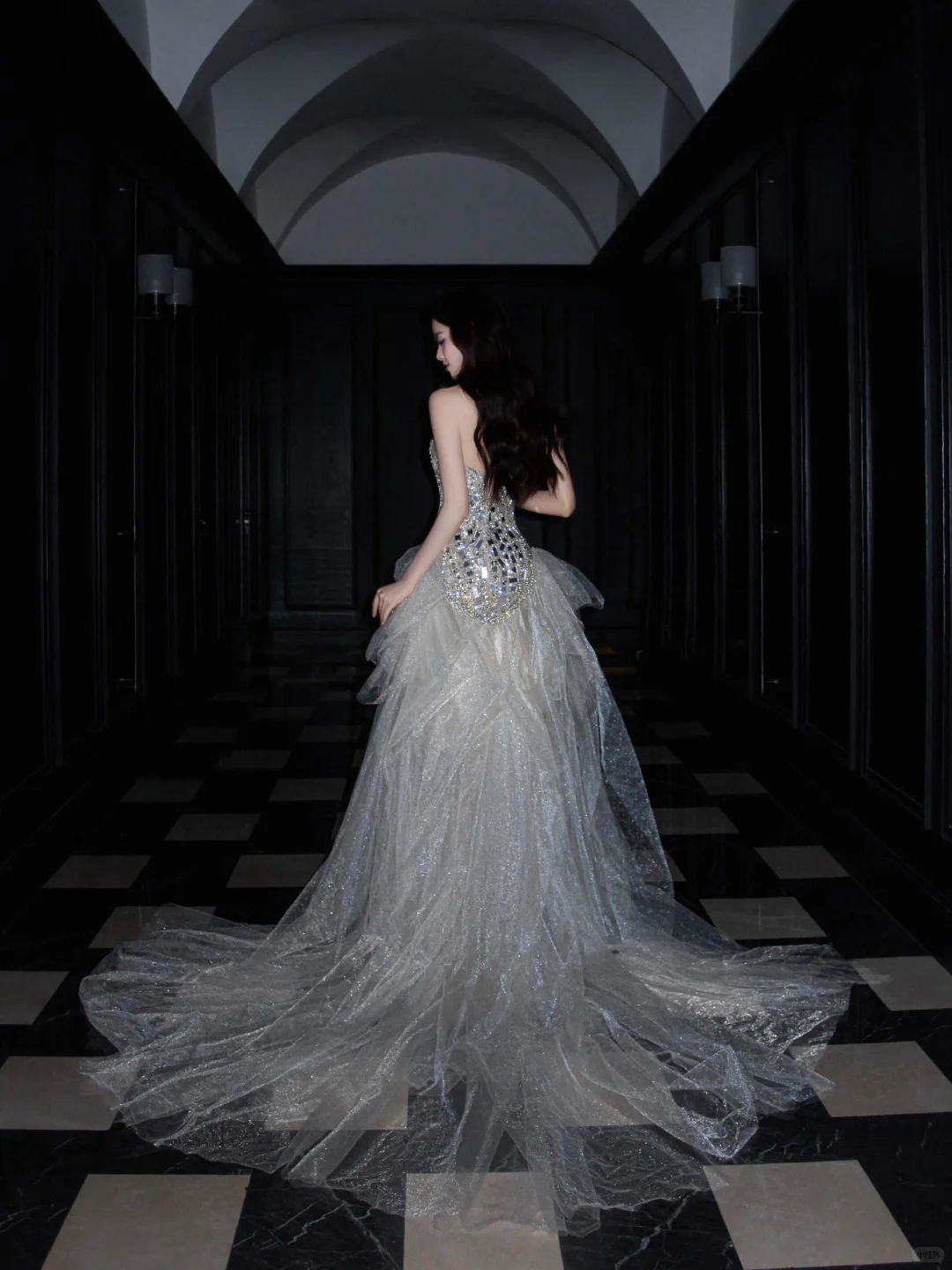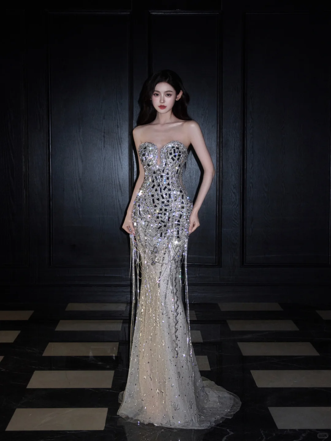 Exquisite Silver Sequin Beaded Mermaid Sweetheart Neck Long Date Dress Evening Dress Prom Dress HZ1023