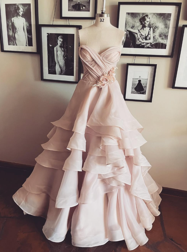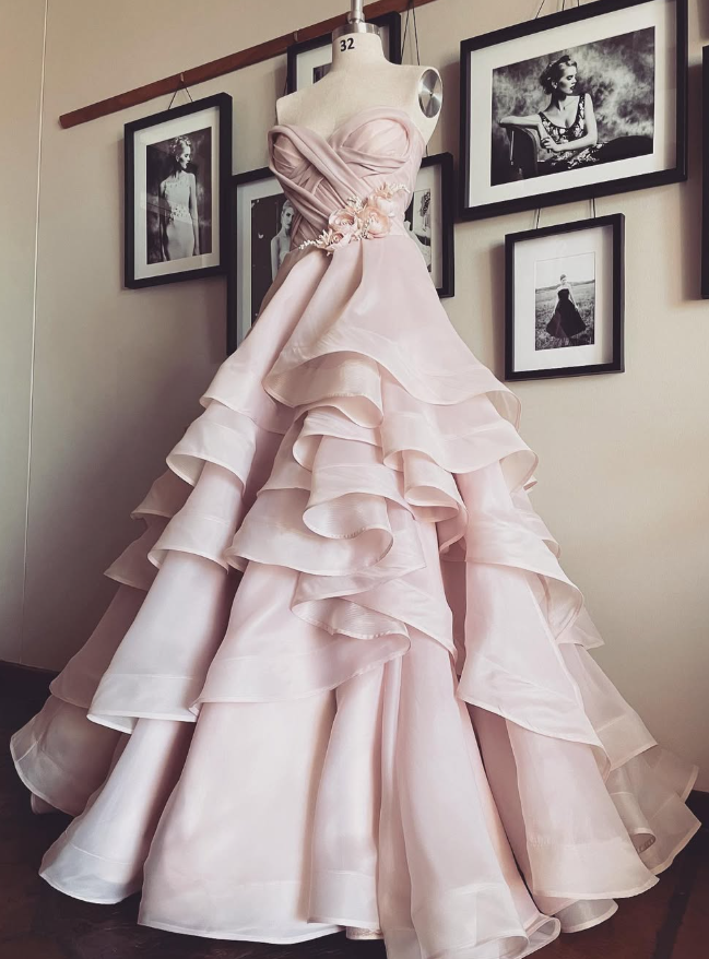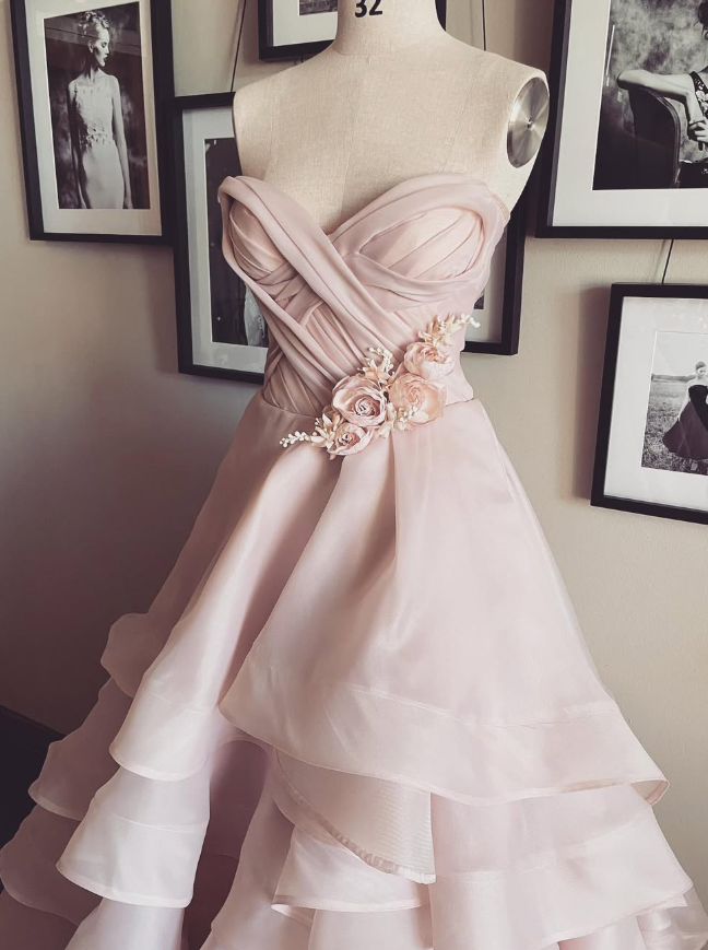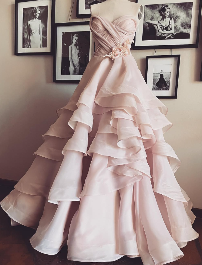 Gentle A Line Sweetheart Neck Flower Tiered Pink Tulle Long Party Dress Evening Dress HZ1023