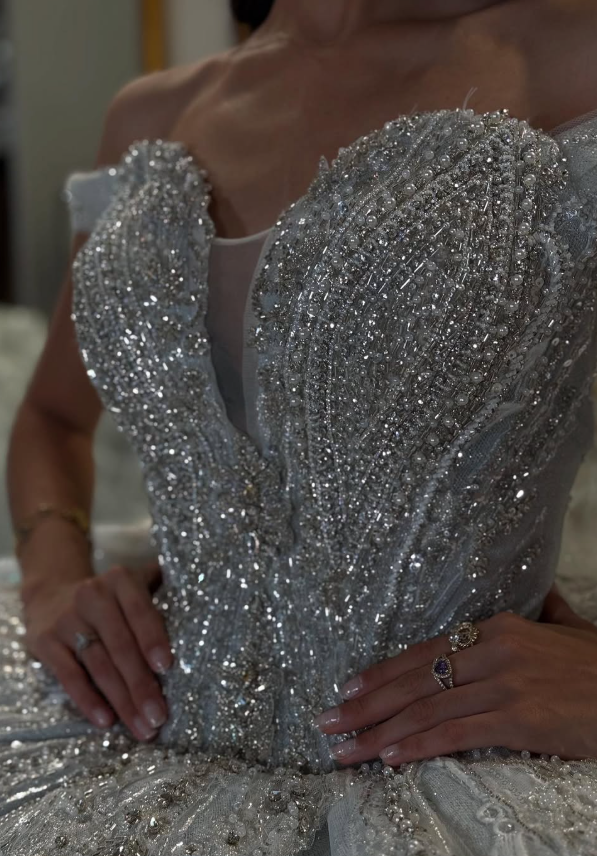 Gentle Blue Ball Gown Off the Shoulder Appliques Tulle Sweet 16 Dress Party Gowns Quinceanera Dresses HZ1023