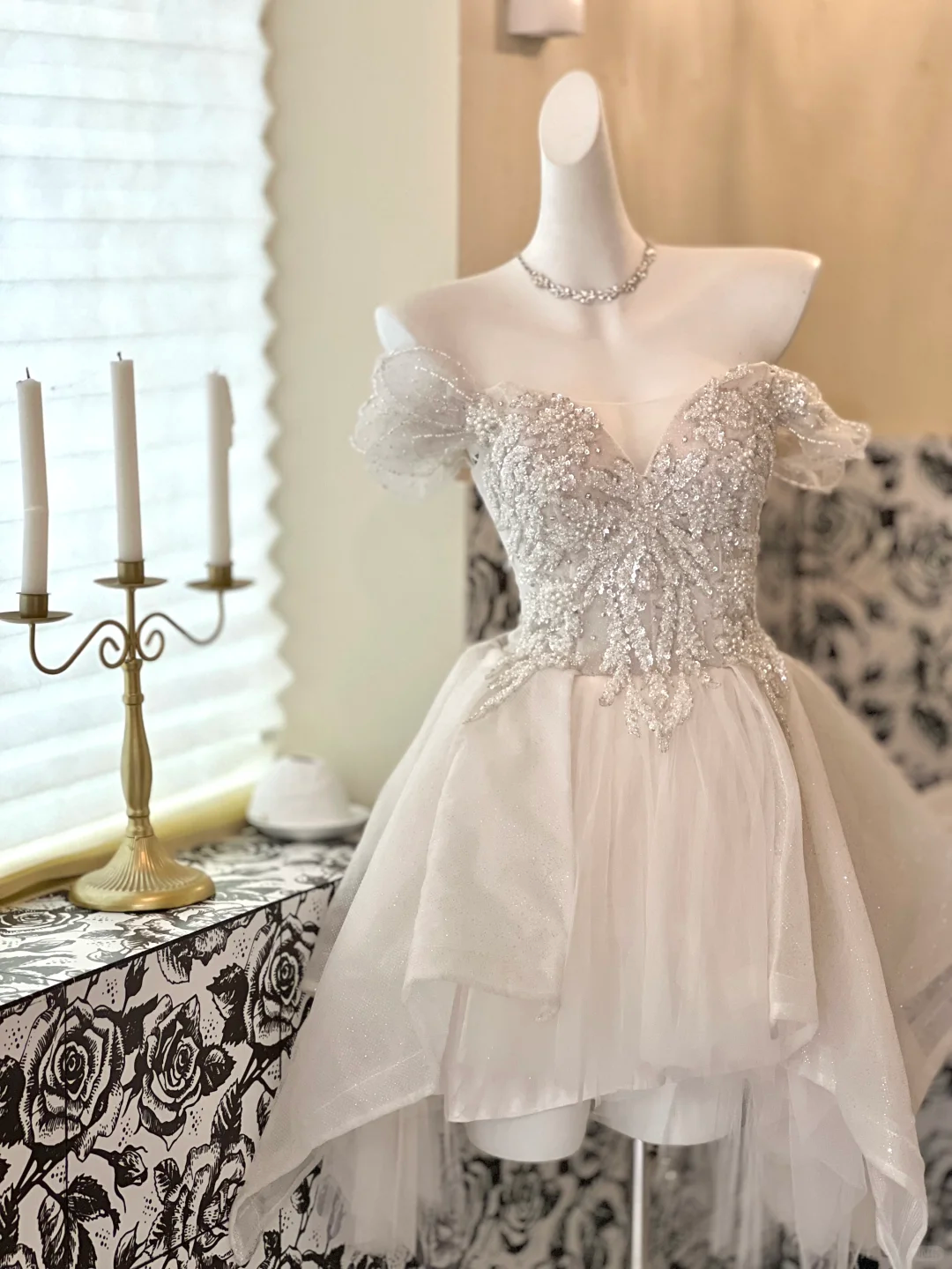 Gorgeous A Line Off the Shoulder Beaded Sequin Tulle Short Homecoming Dress Cocktail Dress HZ1023