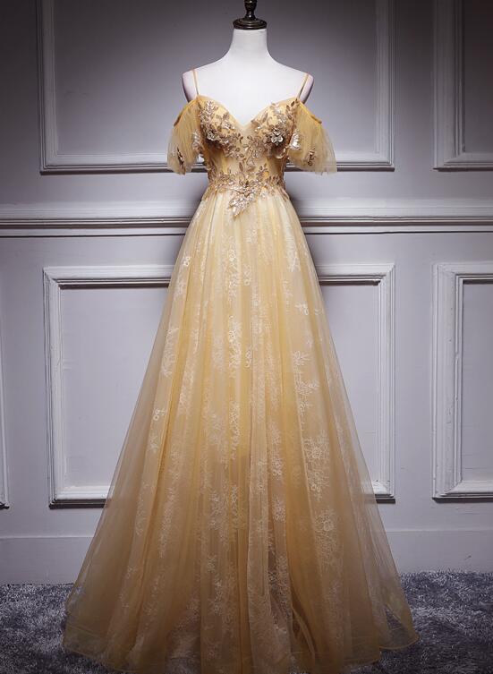 Light Champagne Lace Straps Sweetheart Long Party Dress, A-line Floor Length Prom Dress HZ1023