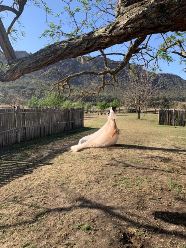 Light champagne tulle lace long prom dress, lace evening dress HZ1023