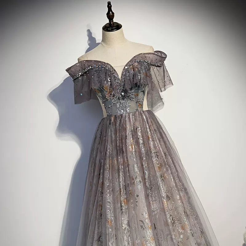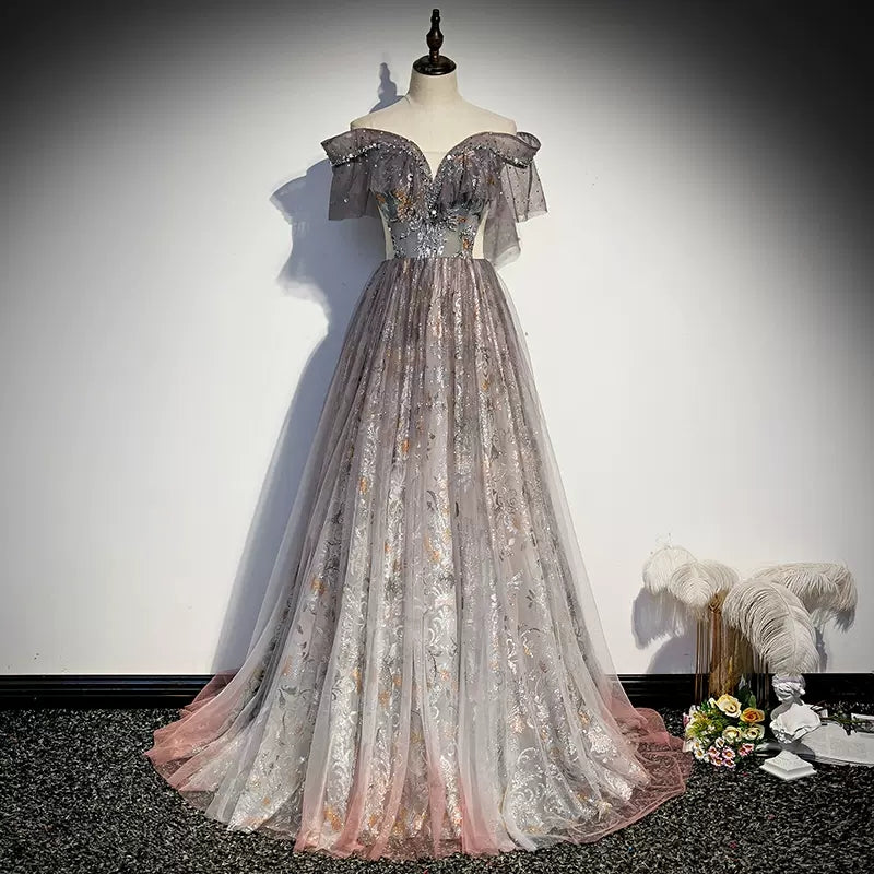 Off The Shoulder Sequin Lace Prom Dresses Sexy Prom Dress HZ1023