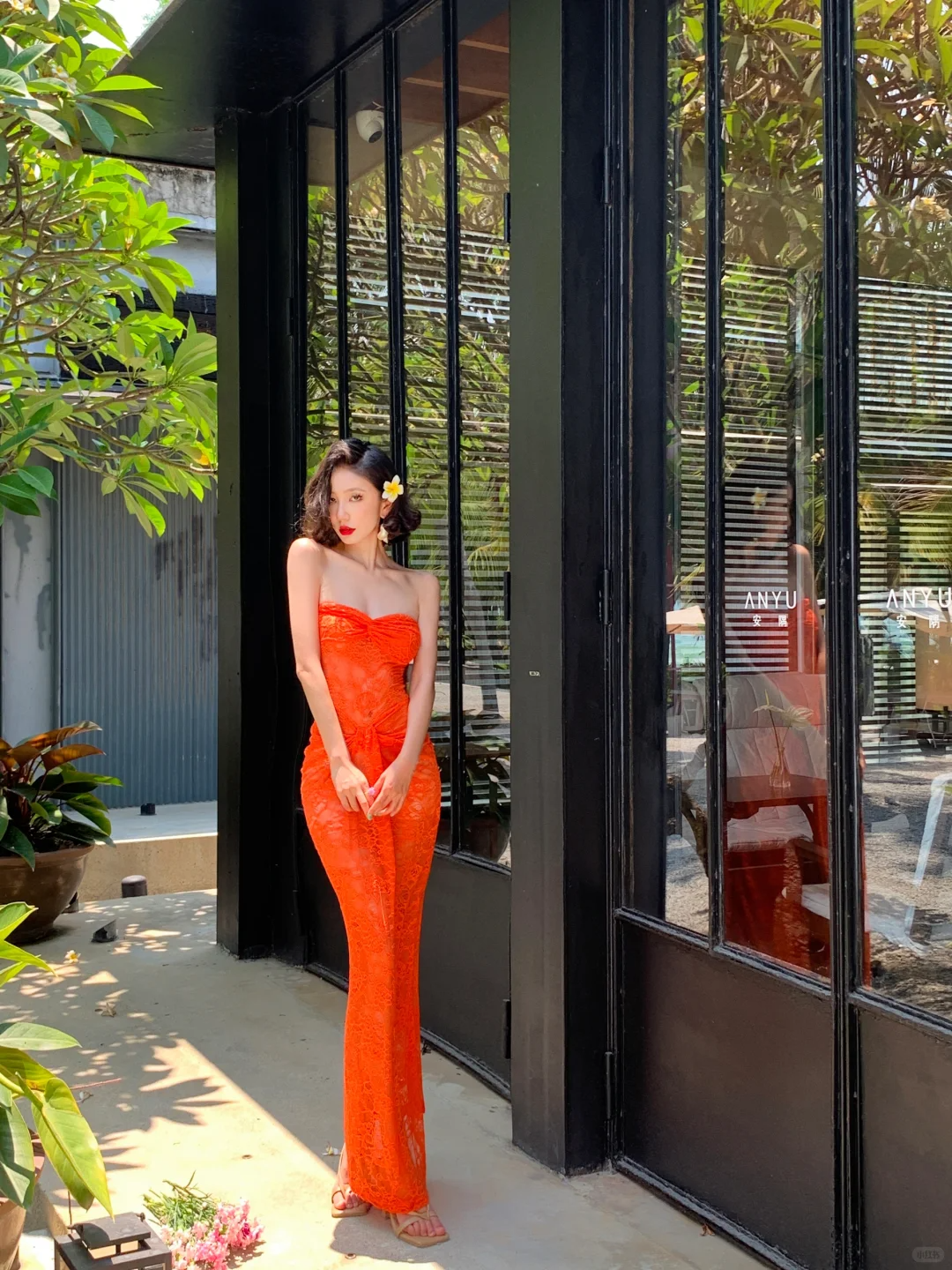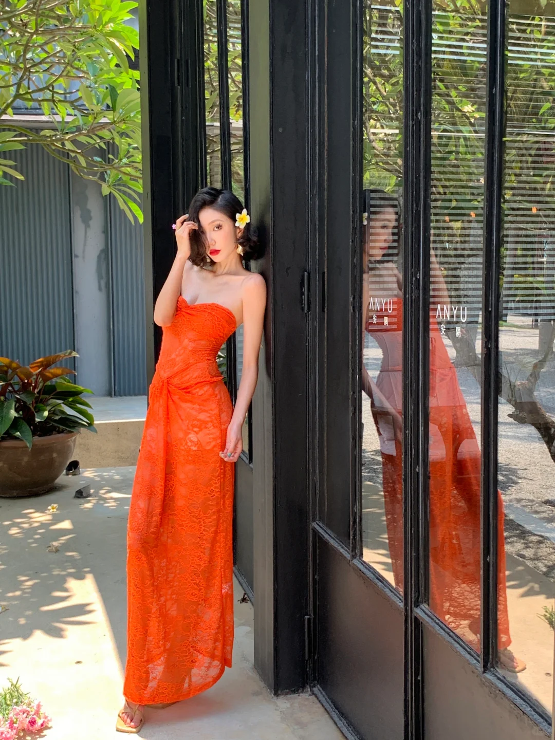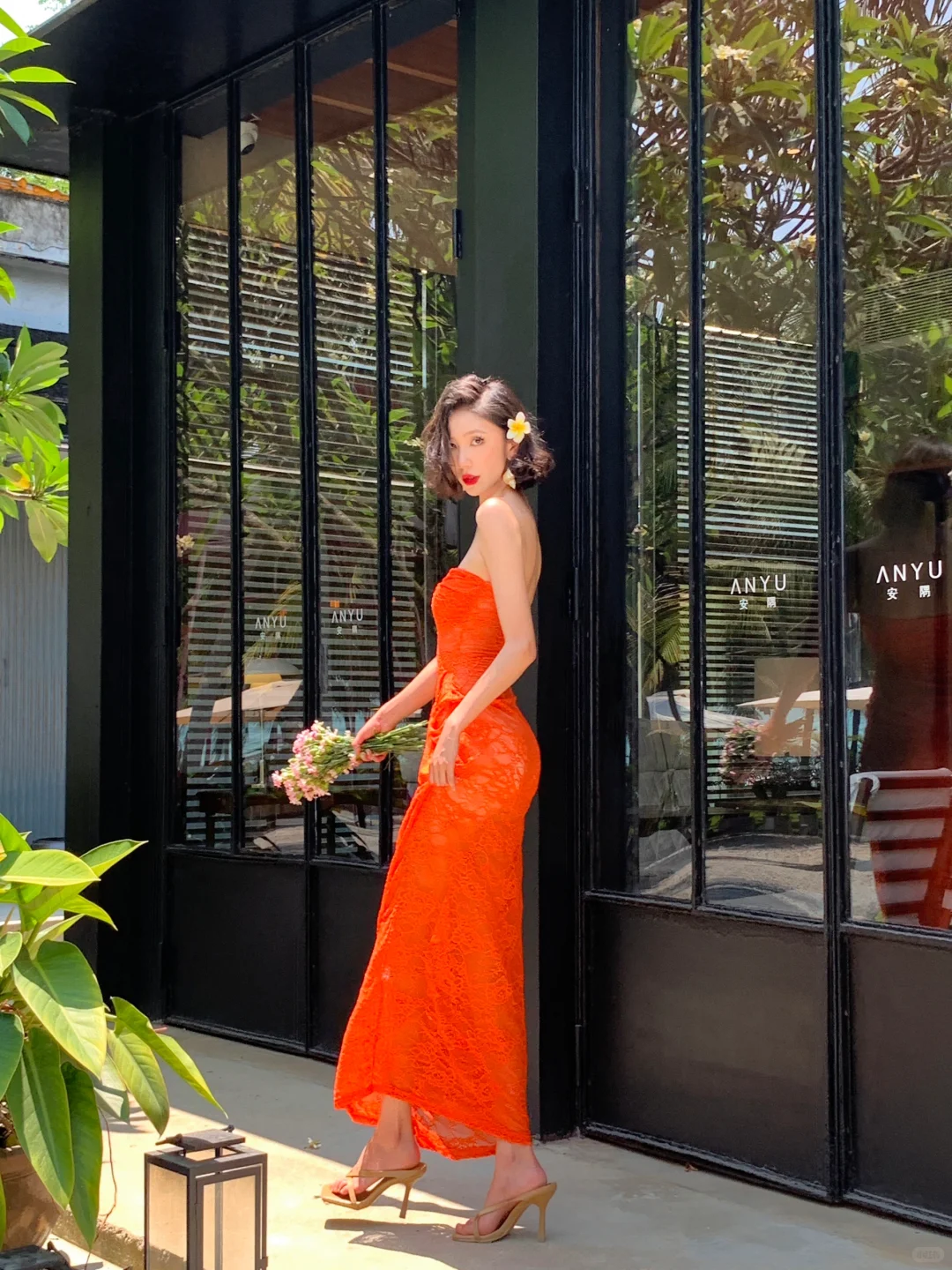 Orange Sheath Sweetheart Neck Sexy Lace Long Prom Dress Vacation Dress HZ1023