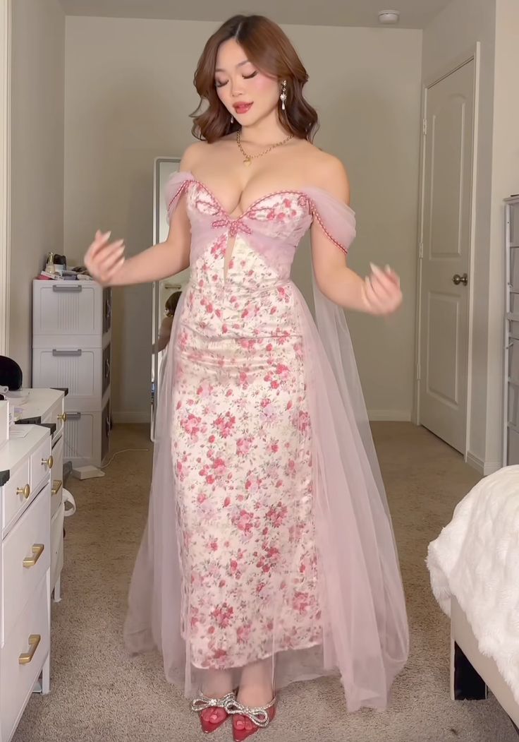 Pink Flowy Print Floral A Line Off the Shoulder Satin Tulle Party Dress Prom Dress HZ1023