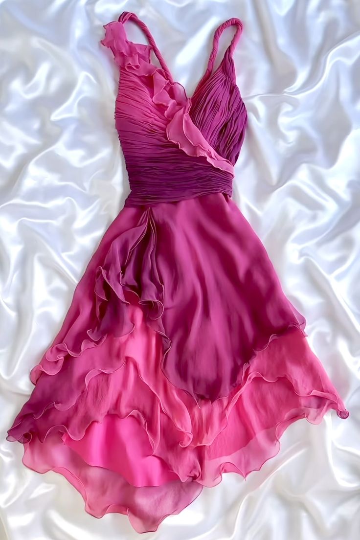 Pink Ombre A Line Straps Layered Ruffle Chiffon Homecoming Dress Outfits HZ1023