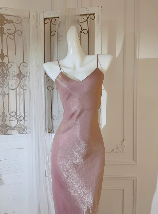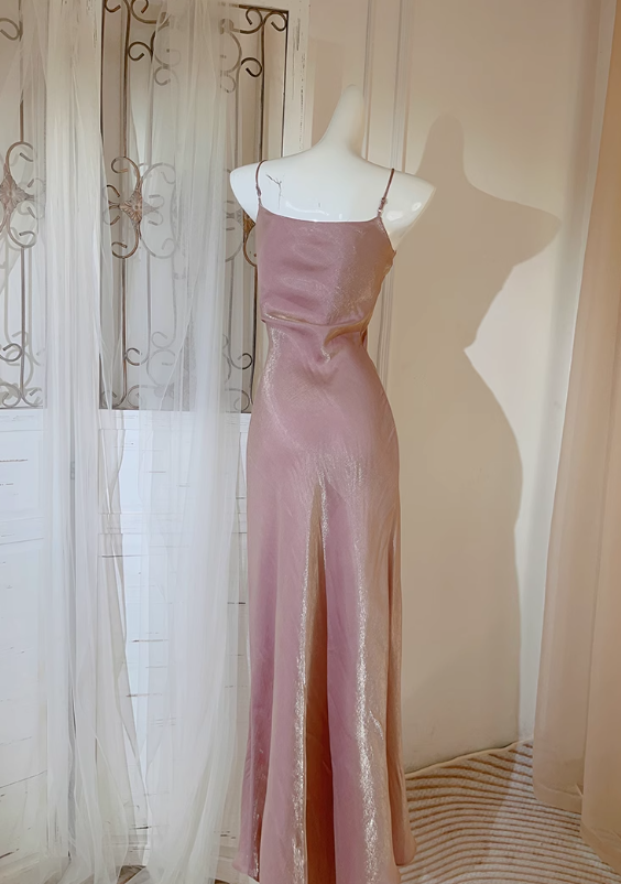 Pink Pretty Mermaid Spaghetti Strap Satin Prom Dress Evening Dress Formal Dress HZ1023