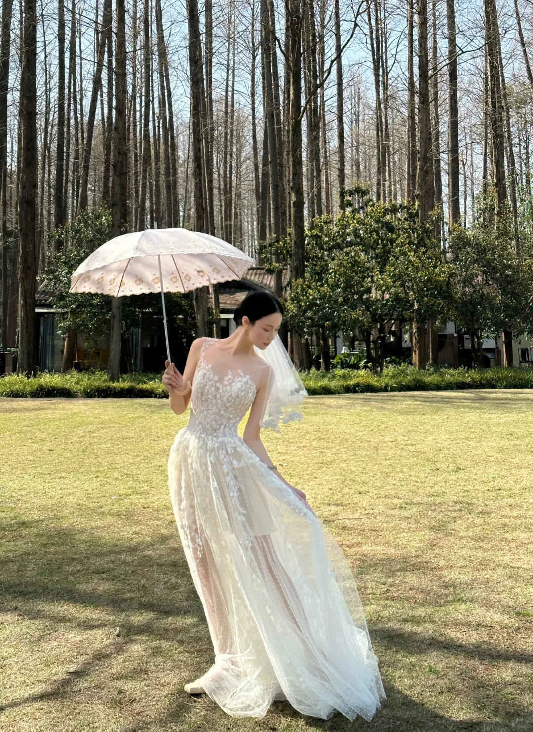 Pretty A Line 3D Floral Tulle Long Prom Dress Wedding Dress HZ1023