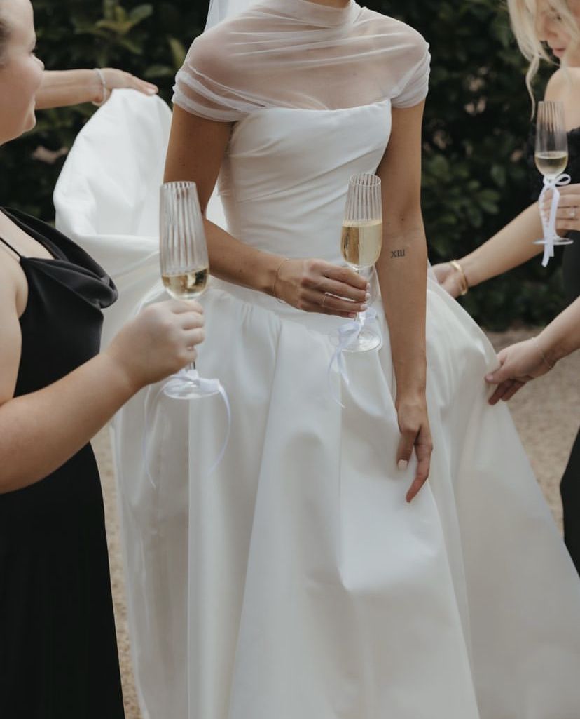 Pretty Ball Gown Strapless Satin Tulle Long Wedding Dress HZ1023