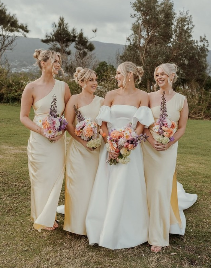 Pretty Sheath One Shoulder Brown Satin Bridesmaid Dress Evening Dress with Slit HZ1023
