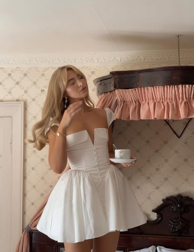 Princess A Line V Neck White Satin Short Homecoming Dress Birthday Dress HZ1023