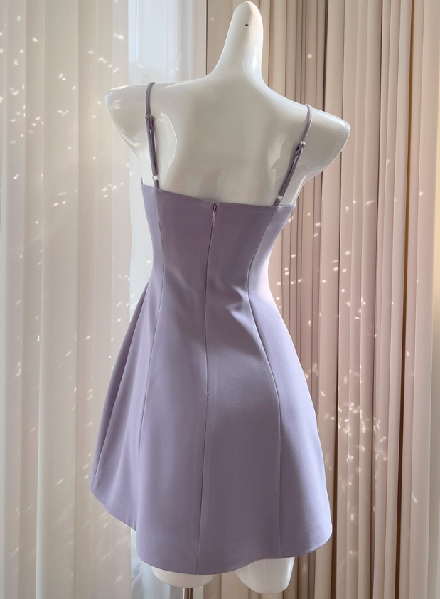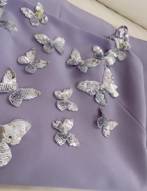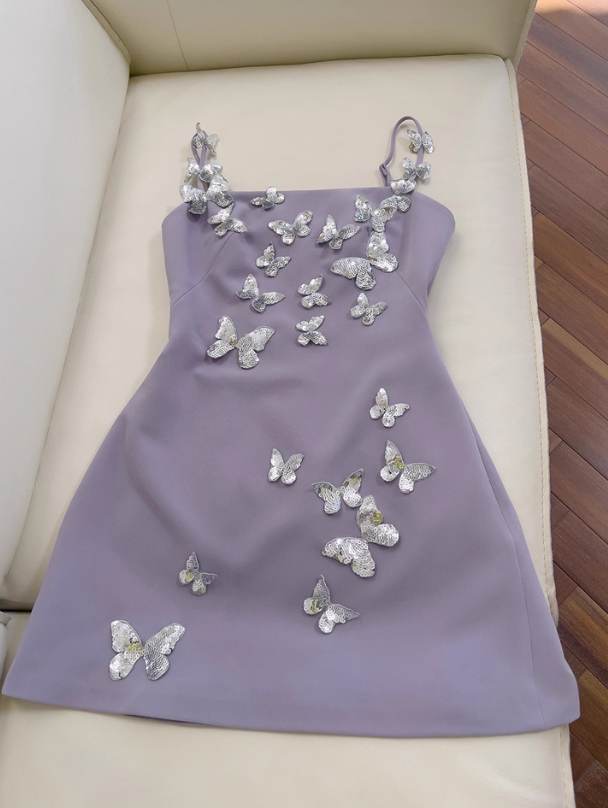 Purple A Line Spaghetti Strap Silver Sequin Butterfly Satin Homecoming Dress HZ1023