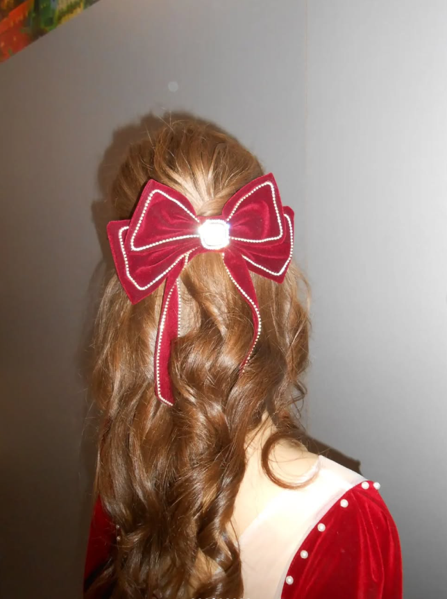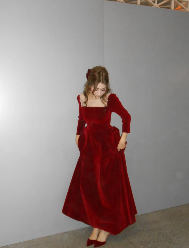 Red A Line Long Sleeve Pearl Velvet Long Prom Dress Formal Dress Party Dress HZ1023
