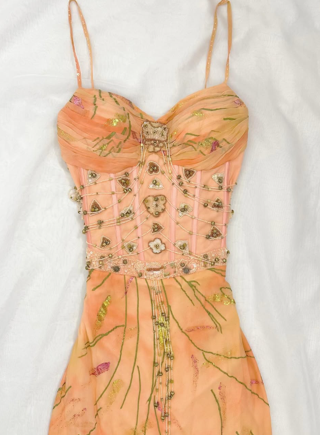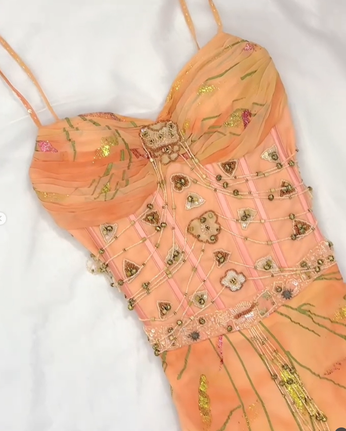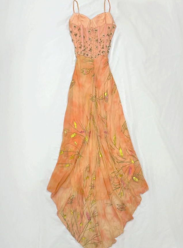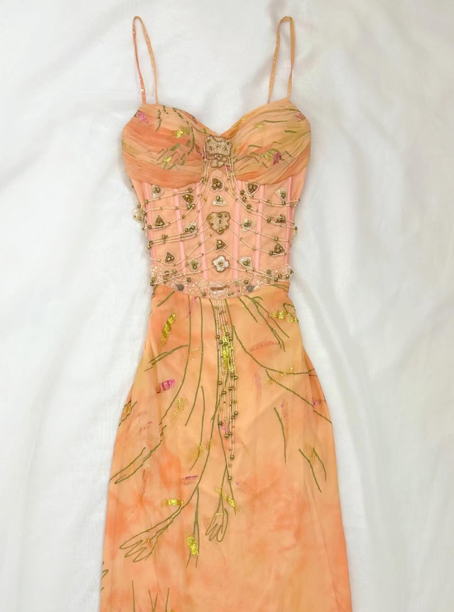 Retro Orange Print Floral A Line Spaghetti Straps Chiffon Long Prom Dress Cocktail Dress HZ1023